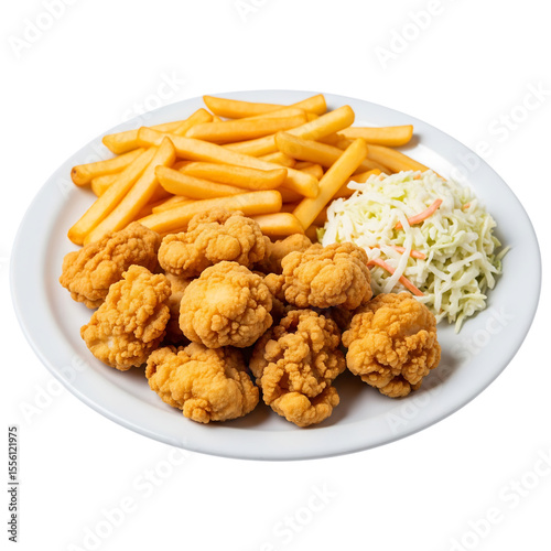 french fries, coleslaw, fast food, take-out, plate, food photography, crispy, meal, delicious, chicken, popcorn, gold, french, fries, side, fresh, honed, quick, satisfying, with, art, design, digital, modern, creative, conceptual, professional, detailed, artistic, illustration, graphic, visual, colourful, decorative, minimalist, contemporary