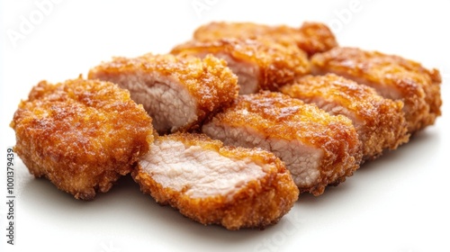 Crispy fried chicken nuggets on isolated white background. Crispy fried theme.