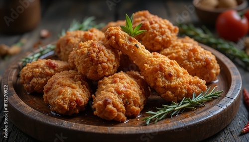 Crispy Fried Chicken on Wooden Plate
