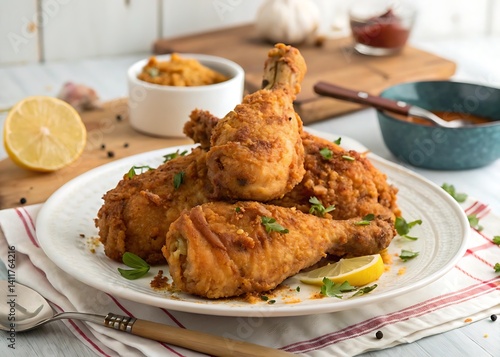 Crispy Golden Fried Chicken Drumsticks with Fresh Herbs & Lemon – Irresistibly Juicy, Crunchy & Packed with Flavor for the Ultimate Comfort Food Craving!