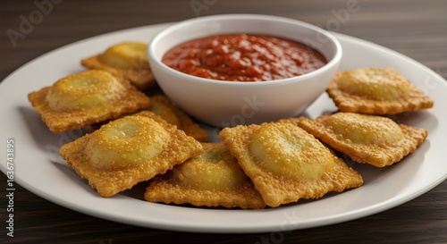 Crispy Golden Fried Ravioli Served With Rich, Flavorful Marinara Sauce for Dipping, Creating the Perfect Blend of Crunchy Texture and Savory Italian Comfort in Every Bite