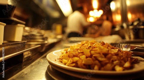 fryer, crispy, hash, detailed, close, bright, lighting, dinner, setting, food, eatery, kitchen, delicious, gold, plate, breakfast, side, meal, cooking, preparation, texture, savoury, fresh, aroma, culinary, indulgence, snack, comfort, traditional, epicure, colourful, display, appetising, scene, interior, modern, cosy, ambience, style, chef, kitchen utensile, countertop, food photography, eatery, hospitality, culinary arts, favor