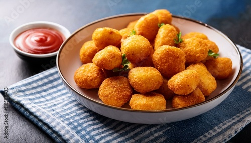 crispy, potato, red, sauce, ketchup, background, tater, gold, brown, tot, dish, american, america, snack, breakfast, deep, fried, fries, bite, round, shape, shaped, mini, delicious, savoury, starter, tasty, crunch, crunchy, meal, traditional, lunch, dinner, meat, cookery, cooked, eat, fresh, healthy, salty, popular, comfort, food, tomatoes, vegetarian, sweet, plain