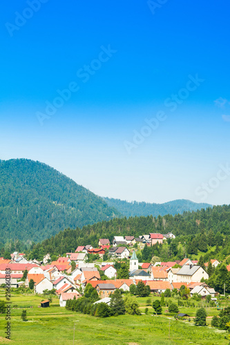 Croatian mountain countryside, town of Lokve in Gorski kotar, panoramic view