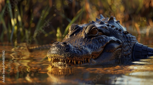 Crocodile in closeup with natural landscape generative ai