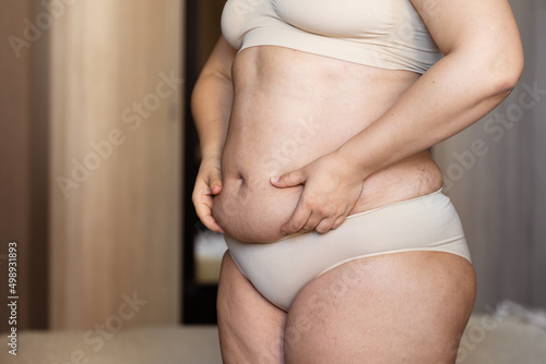 woman, abdomen, fat, body, obesity, stomach, belly, flabby, loss, weight, unhealthy, tummy, overweight, corpulent, cellulite, diet, unrecognizable, liposuction, shape, skin, slimming, girl, stretch, mark, thick, adipose, big, fats, lose, chubby, adiposity, oversize, underclothing, home, lifestyle, bedchamber, fold, dieting, problem, closeup, plus, size, beige