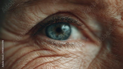 Cropped view of a wrinkled eye of a middle aged Caucasian woman gazing at the camera
