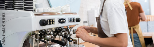 horizontal, business, people, man, crop, banner, service, cafes, woman, work, job, indoor, profession, bakery, men at work, workplace, barista, salesman, confectionery, colleague, partial, interracial, salesgirl, young adult, black woman, african american, small business, coffee machine