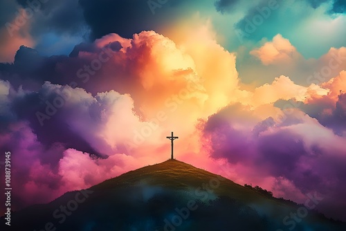 cross, sky, sunset, religion, jesus christ, jesus christ, easter, god, crucifiction, faith, religious, silhouette, crucifix, sunrise, church, catholic, symbol, sun, cloud, landscape, bible, belief, hill, prayer, resurrection, pray, saviour, salvation, christmas, hope, friday, forgiveness, sunday, funeral, risen, surrender, believe, orthodox, grace, ascension, christian, hilltop, vibrant, background, good friday, digital artwork, artwork, dusk, nature