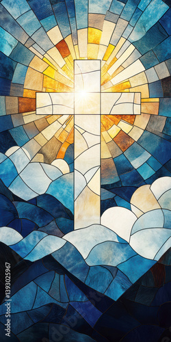 cross, stained-glass, religion, christianity, faith, church, jesus christ, light, hope, sunrise, spiritual, symbol, sun, sky, inspiration, heaven, worship, holy, mosaic, art, colourful, glasses, window, christian, religious, belief, glow, peace, mountain, cloud, sacred, illustration, sunlight, god, jesus christ, beautiful, divine, artistic, architecture, symbolic, tradition, grace, landscape, spirituality, eternity, prayer, mystical, background