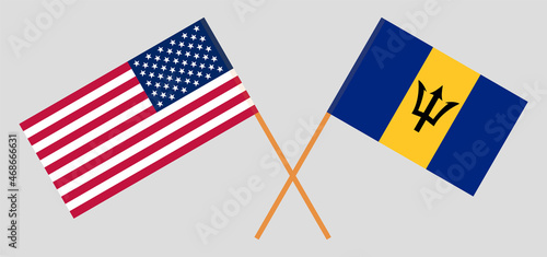 Crossed flags of the USA and Barbados. Official colors. Correct proportion