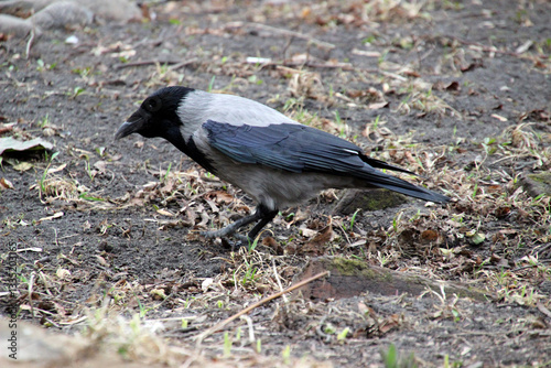 crow, bird, foraging, nature, wildlife, ground, grey, black, dirtied, leaf, daytime, habitat, scavenging, feeding, animal, behaviour, ecology, environment, avian, earth, wing, beak, feather, natural, setting, insect, seed, scavenger, rural, dry, grass, exploration, search, nesting, small, timberland, outskirts, landscape, biodiversity, solitary, species, walk, activity, park, garden, birding