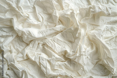Crumpled white fabric texture showcasing elegant folds and creases, ideal for backgrounds and textiles