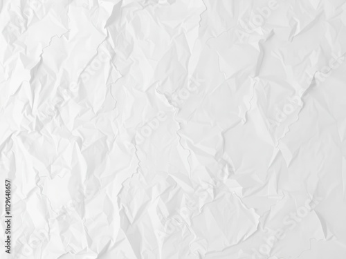 Crumpled white paper texture with creases and wrinkles for background design projects, pattern, wrinkled