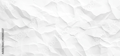 Crumpled White Paper Texture with Sharp Shadows and Creased Folds.
