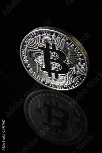 Cryptocurrency coins on black background