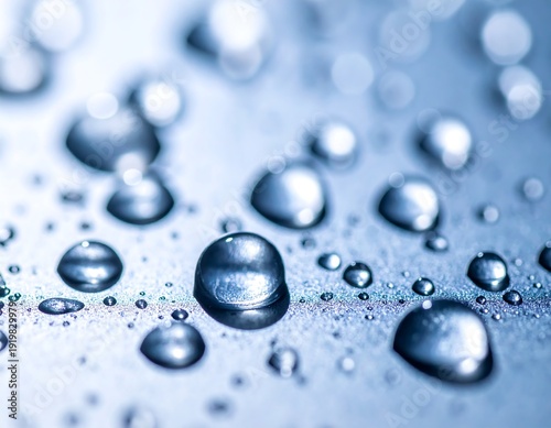 Crystal Clear Water Droplets Magnificently Reflecting Light on a Smooth, Cool Surface, Capturing Purity and Refreshing Abstract Beauty in a Close-Up View