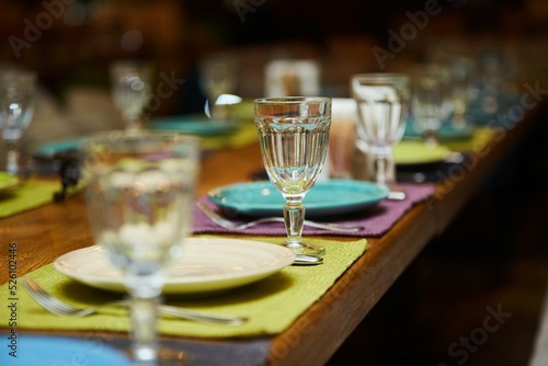 Crystal glasses for newlyweds wedding, decorated for the holiday.