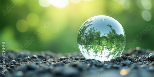 nature, environment, ecology, crystal, globe, sphere, tree, green, background, pebble, rock, ground, sunlight, sun, bokeh, eco, sustainable, earth, planet, environmental, landscape, outdoors, natural, beauty, serenity, calm, peaceful, vibrant, bright, summer, spring, clean, fresh, organic, healthy, growth, preservation, conservation, sustainability, earth