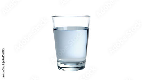 Crystal-clear glass of water, isolated on pure white background, reflecting the light