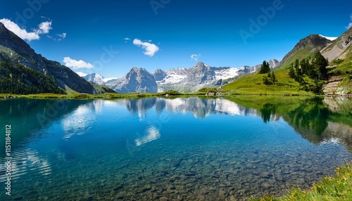 lake, alpine, mountain, sky, blue, clear, water, rock, green, hill, snow, peak, serene, tranquil, calm, peaceful, nature, scenic, beautiful, landscape, photo, image, summer, sun, bright, photo, view, travel, holiday, destination, panorama, highland, outdoors, switzerland, alps, mountainous, idylli, vista