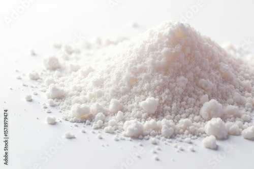 Crystalline sugar granules, bright white background, white sugar, reflecting, pastry
