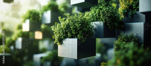 urban, green, plant, vertical, gardening, architecture, design, modern, geometric, cubic, potted, lush, natural, fresh, freshness, greenery, growth, sustainable, elevated, wall, system, exterior, structure, building, living, wall-mounted, technology, innovation, eco, composite, potting, contemporary, digital, art