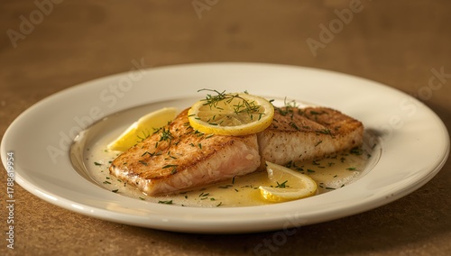 food, fish, lemon, plate, herb, cooking, cookery, delicacy, eatery, presentation, culinary, studio, photo, light, texture, gold, white, tasty, savoury
