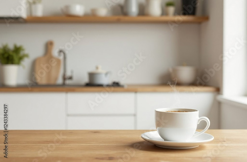 hot drink, cup, wooden, table, modern, kitchen, interior, cafes, mug, aroma, design, morning, caffeine, white, wood, background, food, break, fast, brown, hot, beverage, closeup, black, drink, tea, breakfast