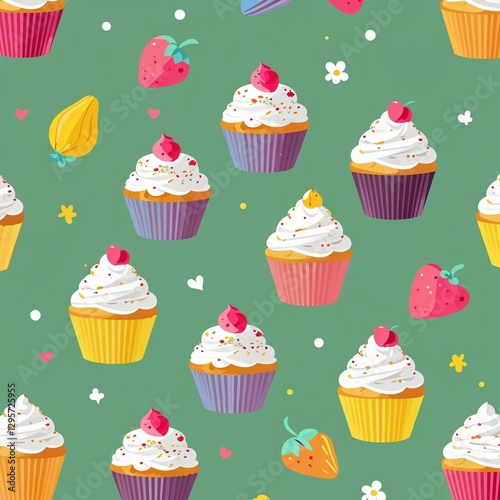 cupcake, plain, green, background, childish, style, illustration, cake, cupcake, birthday, vector, sweet, dessert, chocolate, food, muffin, cream, set, cherry, cute, cup, candy, party, strawberry, bakery, cartoon, pink, pattern, delicious, celebration