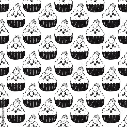 cake, cupcake, birthday, dessert, sweet, food, muffin, chocolate, illustration, cream, cartoon, cup, bakery, cute, strawberry, cupcake, pattern, decoration, icing, vector, cherry, candy, set, party, pink