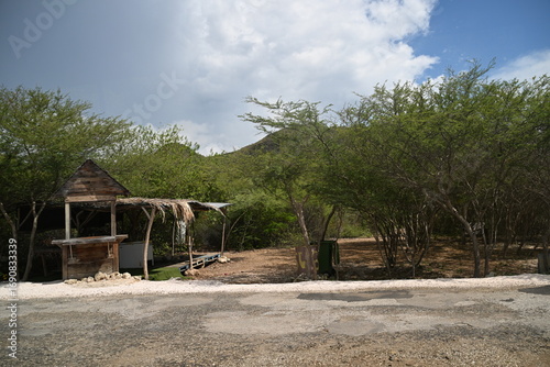 Curacao - abstract view of an abandoned sales stand in the jungle at Playa Kenepa Grande beach