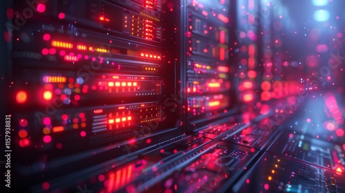 Curate a neon series of database symbols, including shimmering server