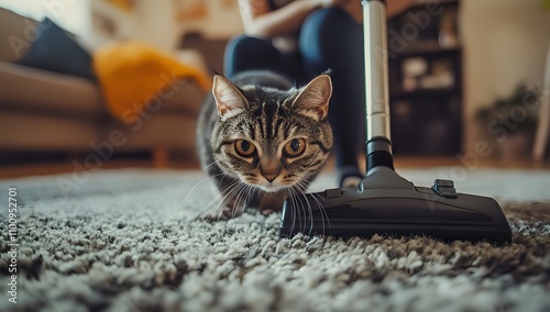 cat, kitten, vacuum, cleaner, carpet, home, pet, domestic, animal, mammal, fluffy, grey, brown, tabby, eye, curious, watching, cleaning, housework, floor, rug, furniture, living, room, indoor, closeup, sharpened, shallow, depth, field, adorable, cute, sweet, lovely, felino, munchkin, persian, siamese, scottish