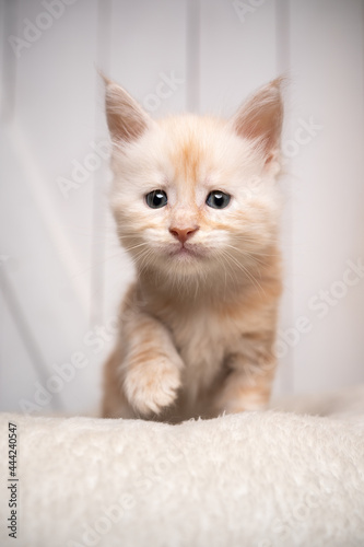 curious cream white maine coon kitten portrait
