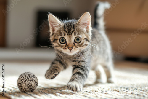 Curious Kitten Playing with Yarn – Adorable Commercial Pet Image