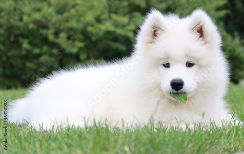 dog, samoyed, animal, white, pet, canino, puppy, cute, domestic, breed, purebred, portrait, pedigree, husky, fur, mammal, beautiful, young, eskimo, grass, happy, isolated, fluffy, tongue, friends