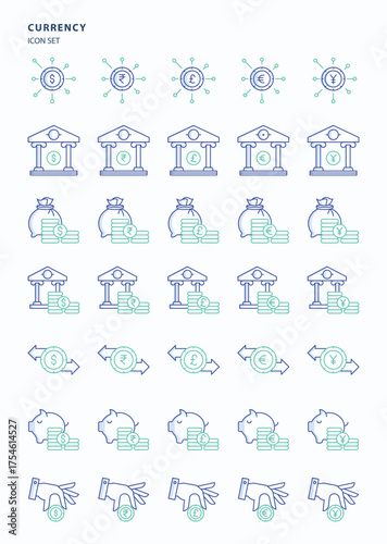 Currency and wealth outline color icon set, Its including icons like bank, Financial Institution, money saving