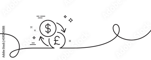 Currency exchange line icon. Continuous one line with curl. Dollar to Pound money sign. Convert currency symbol. Currency exchange single outline ribbon. Loop curve pattern. Vector