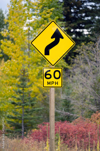 Curve Ahead Highway Sign 60 MPH