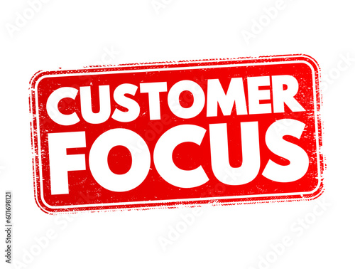Customer Focus - strategy that puts customers at the center of business decision-making, text concept stamp