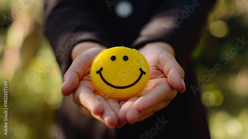 smiley, smile, face, yellow, ball, hand, emotion, happiness, smiling, symbol, emoticon, joy, fun, toy, object, concept, three-dimensional, icon, funny, orange, woman