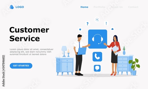 Customer Support and Advising Clients Vector Illustration Concept , Suitable for web landing page, ui, mobile app, editorial design, flyer, banner, and other related occasion