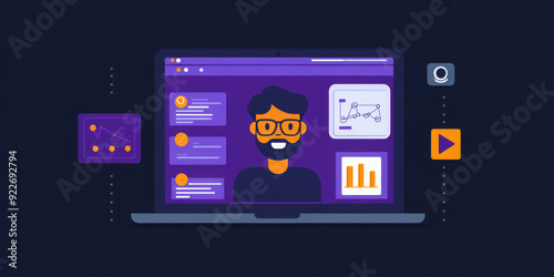 client, datum, technology, business, artificial intelligence, software, laptop, communication, vector, illustration, information, management