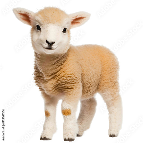 Cut out of young sheep isolated on white background Ultradetailed studio photo of a cut out of a young sheep showcasing a front view 34 view side profile and rear angle The cutout i