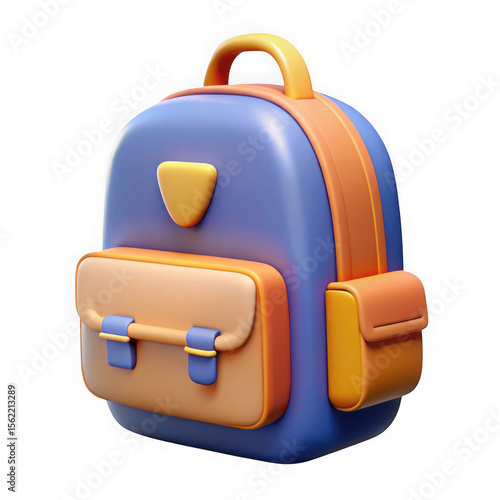 backpack, school, education, travel, bag, baggage, student, children, children, children, cartoon, three-dimensional, illustration, icon, symbol, design, graphic, isolated, object, transparent, background, white, cut-out, simple, minimalist, modern, cute, adorable, playful, fun, blue, orange, yellow, storage, carry, adventure, hiking, camping, college, university, back, to, accessory, gear, equipment, item, element, asset
