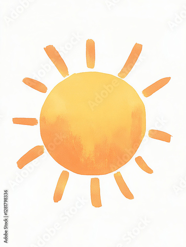 Cute and simple illustration of a sun with soft colors in orange and yellow tones on a white background,