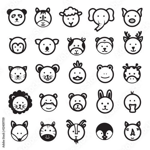 cute, face, vector, set, panda, horse, sheep, elephant, pig, owl, koala, cow, monkey, reindeer, cat, tiger, rat, chicken, frog, giraffe, lion, hippopotamus, bear, rabbit, duck, fox, zebra, goat, penguin, rhino, cartoon, portrait, head, character, hippo