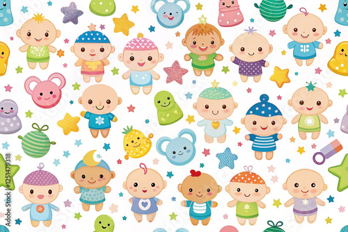 baby, baby, cute, toy, star, pattern, childcare center, shower, adorable, infant, children, children, children, toddler, girl, boy, happy, fun, playful, sweet, innocent, childhood, textile, fabric, background, design, illustration, graphic, wallpaper, print, vector, image, art, cartoon, seamless, texture, pastel, colourful, digital, artwork, decoration, element, lovely