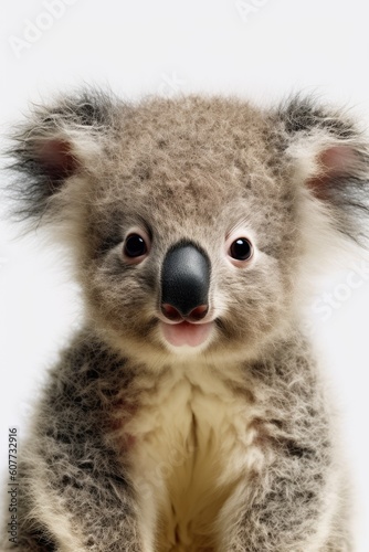Cute baby Koala isolated on a white background. Generative AI